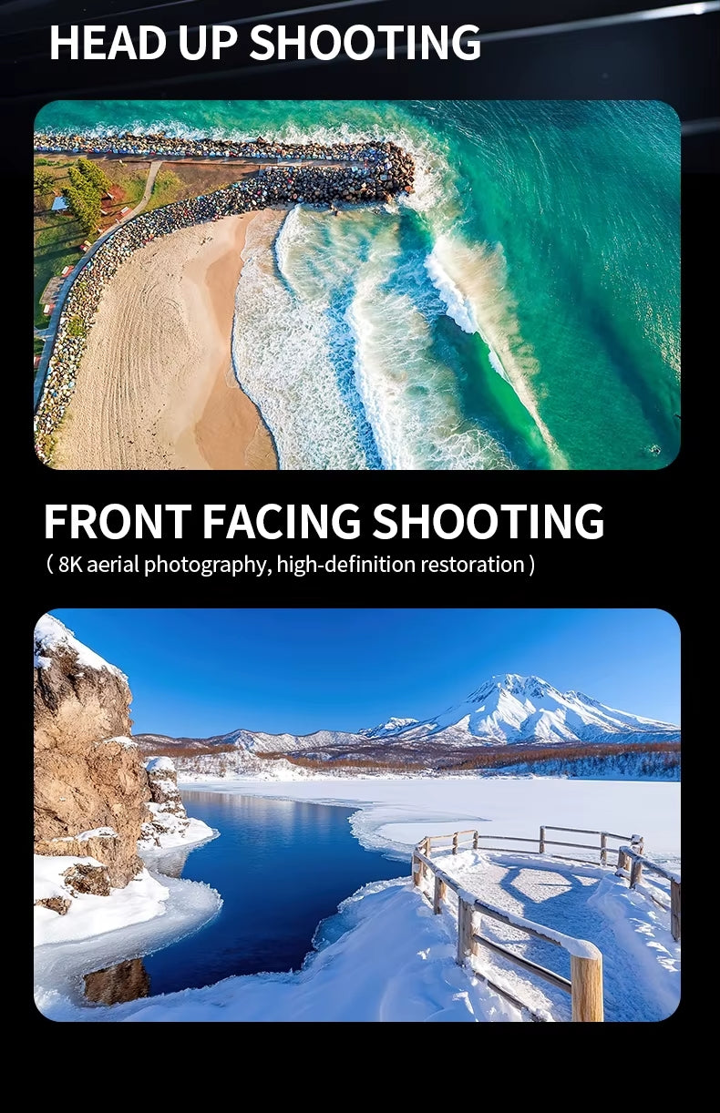 -There have 2 cameras can be choose. With Dual 8K wide angle camera give wide high denfinition pictures and video.